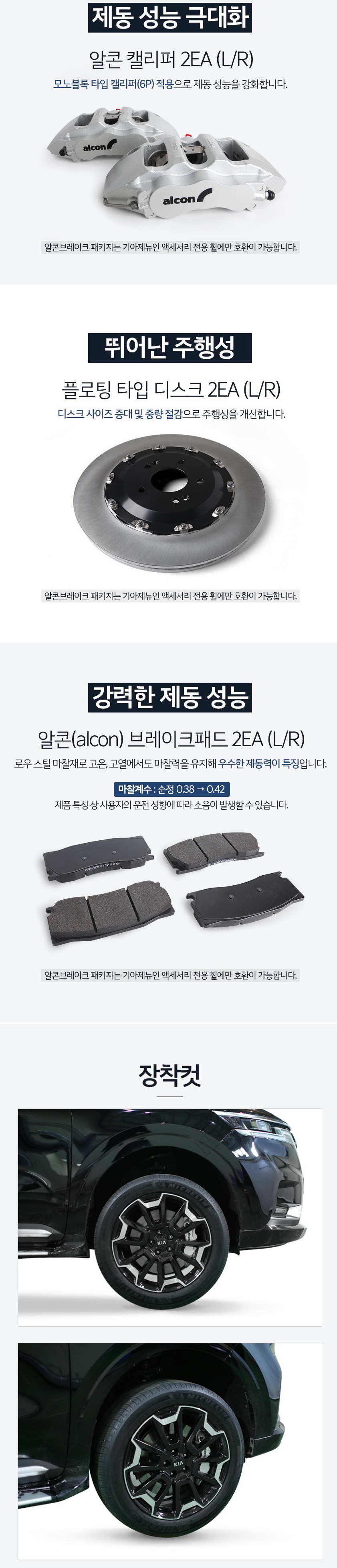 Комплект передней тормозной системы KIA Carnival KA4 оригинальная Tuix Alcon
