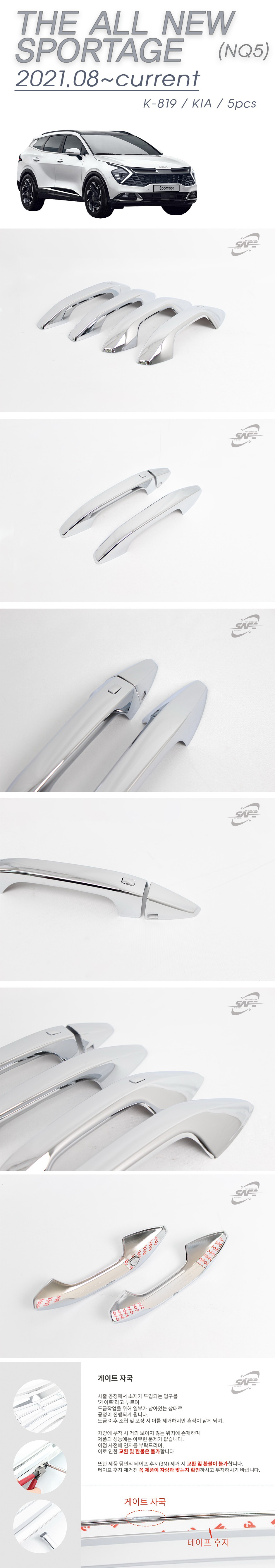 Накладки на ручки KIA Sportage V хром KD Safe Корея